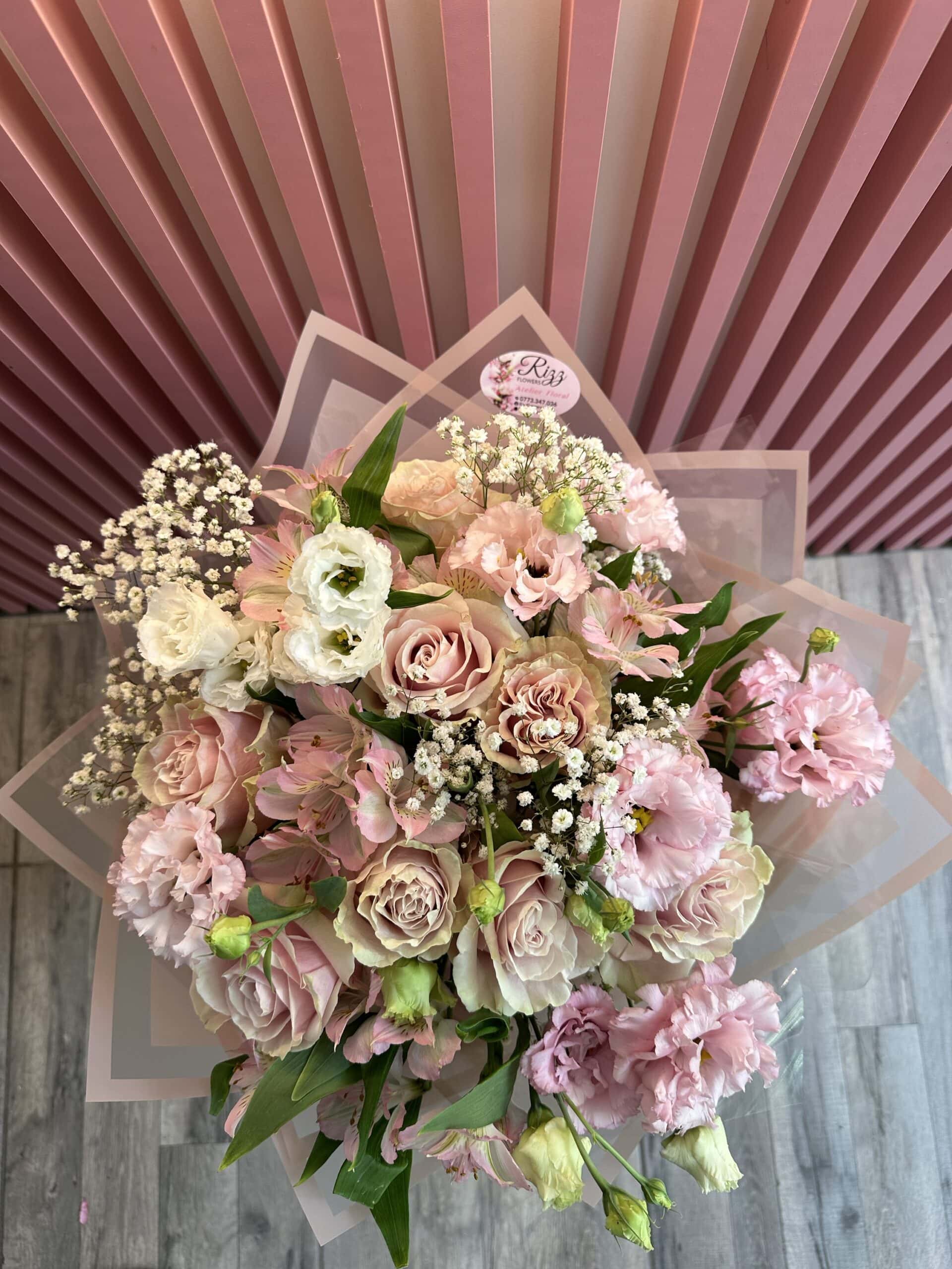 Lisianthus proaspăt/trandafiri parfumați/gipsophyla Mărime : mediu